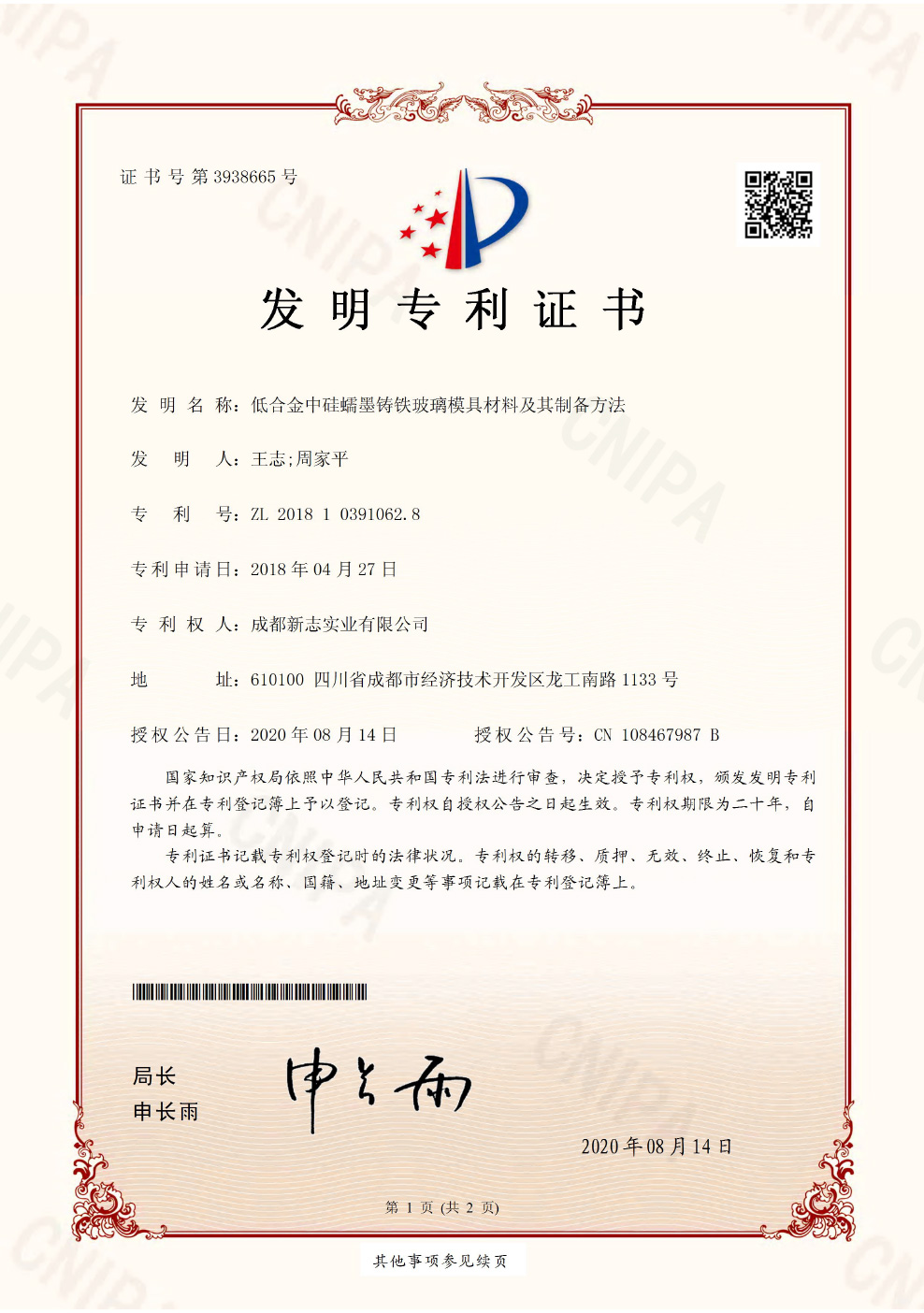 低合金中硅蠕墨铸铁玻璃模具材料及其制备方法